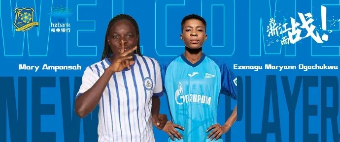 3月6日訊 杭州銀行女足官方宣布,兩名非洲外援瑪麗-安蓬薩、埃澤納古正式加盟。