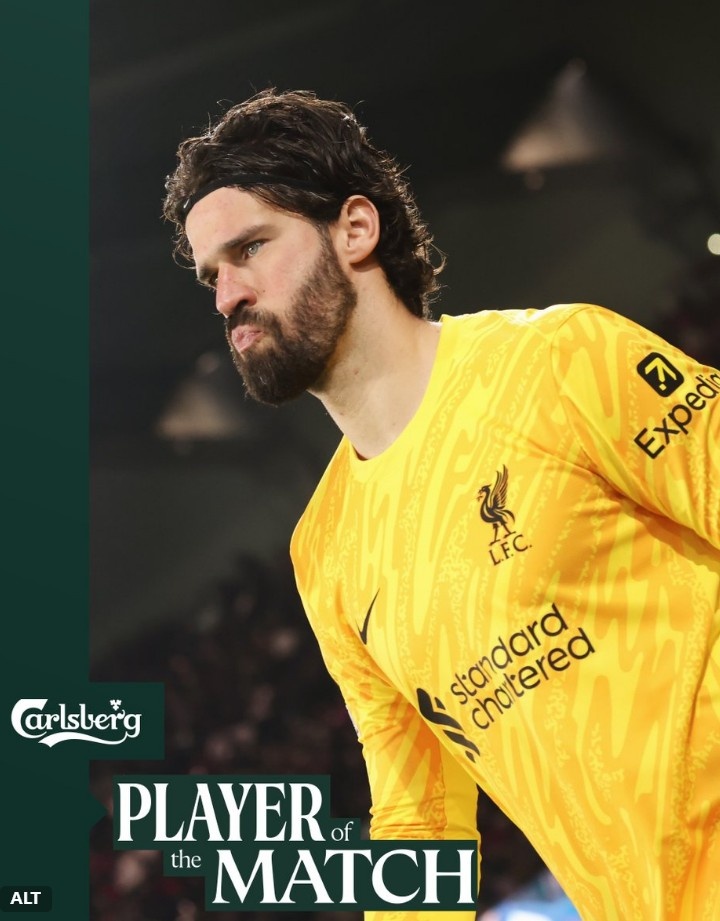 本場(chǎng)比賽阿利森貢獻(xiàn)9次撲救,幫助球隊(duì)最終零封取勝,賽后他也當(dāng)選利物浦官方評(píng)選出的本場(chǎng)隊(duì)內(nèi)最佳球員。