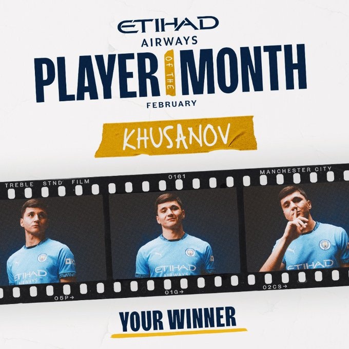 3月7日訊 曼城官方消息,俱樂部冬窗新援胡桑諾夫當選球隊2月最佳球員。