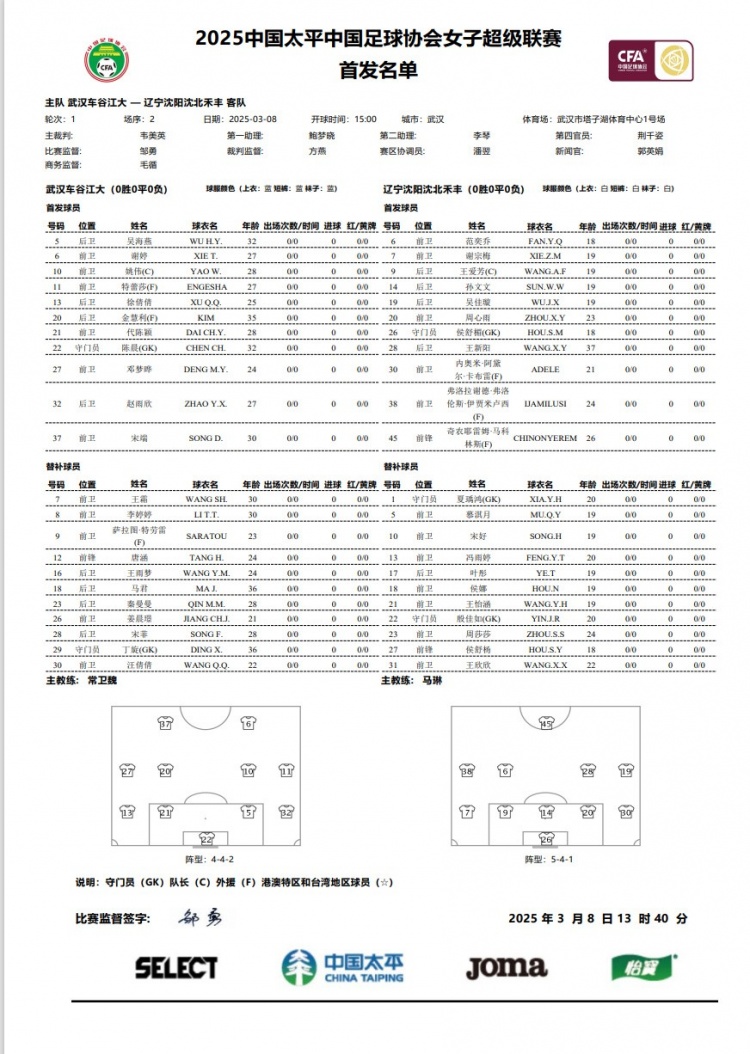 3月8日訊 新賽季女超聯(lián)賽首輪比賽今天正式打響,回歸武漢女足的王霜進(jìn)入了球隊首輪比賽的大名單。