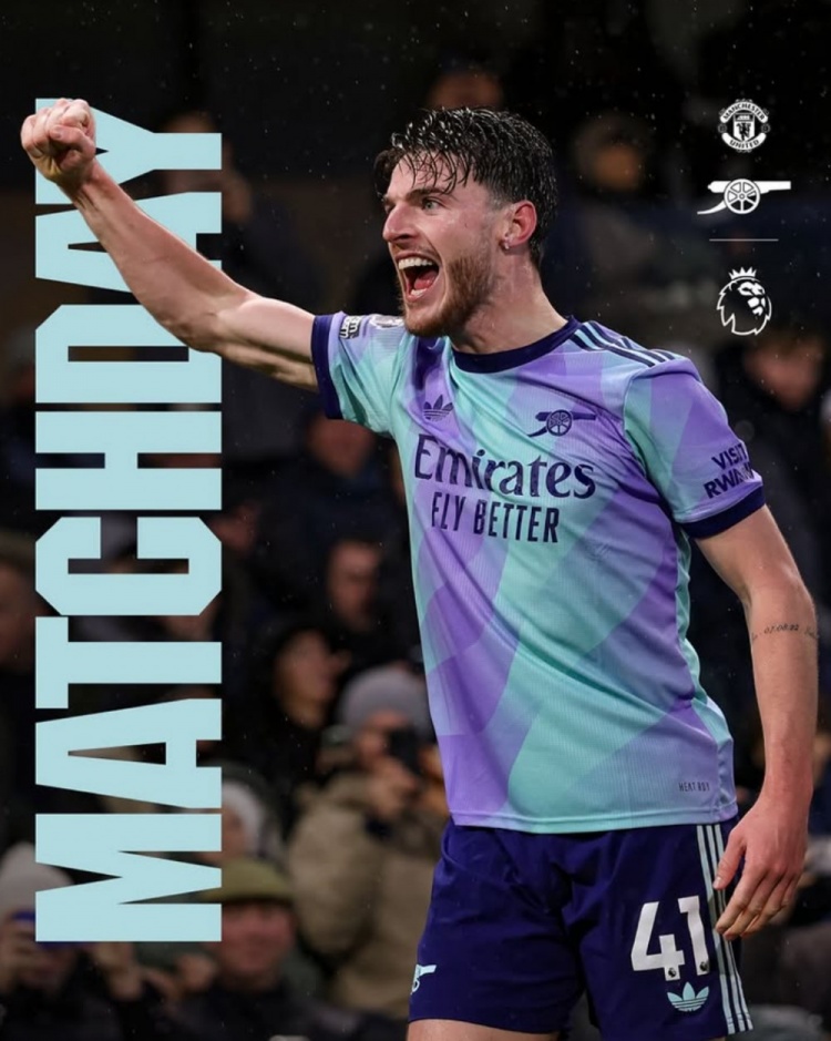 阿森納社媒發(fā)布為此役制作的海報,中場球員賴斯出鏡。