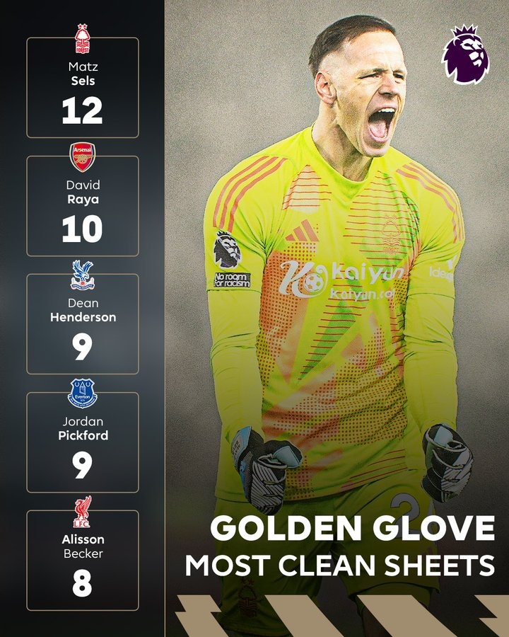 英超官推寫道:“森林對(duì)陣曼城,塞爾斯又一次零封對(duì)手,現(xiàn)在他12次零封,多2次領(lǐng)跑零封榜。”