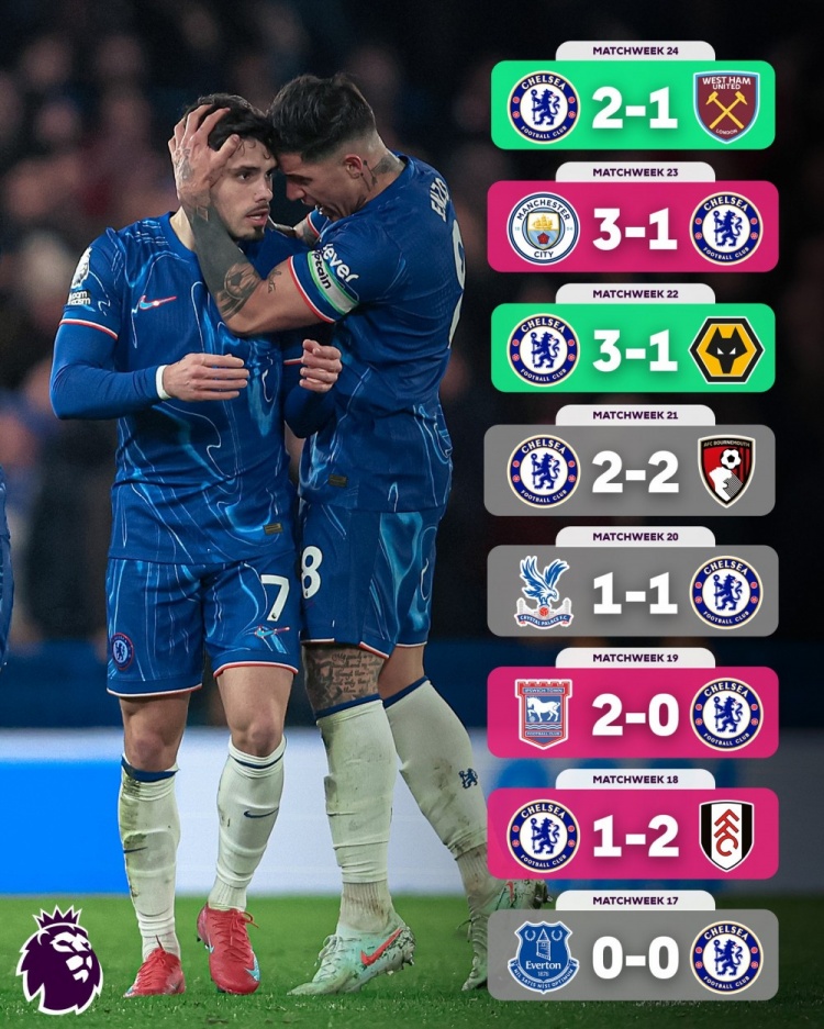 英超官方曬出了切爾西近8場英超比賽的戰(zhàn)績,8場比賽藍軍僅取勝2場,具體戰(zhàn)績2勝3平3負。