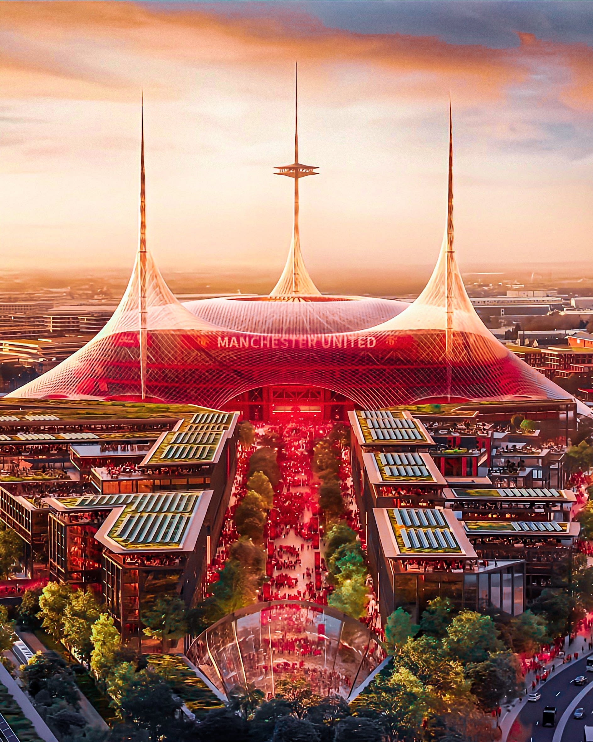 諾曼-福斯特勛爵闡釋設(shè)計理念:“這無疑是當(dāng)今世界最令人振奮的項(xiàng)目之一,具有重大的區(qū)域和國家級戰(zhàn)略意義。設(shè)計以球迷體驗(yàn)為原點(diǎn)——通過縮短看臺與球場的距離,在聲學(xué)上營造出震撼的助威聲浪。體育場被巨型頂棚環(huán)抱,兼具能量收集與雨水回收功能,其下方是兩倍于特拉法加廣場規(guī)模的公共廣場。這座外向型體育場將成為全新可持續(xù)發(fā)展社區(qū)的核心,打造全步行化、公交導(dǎo)向、生態(tài)融合的未來微型城市,締造曼徹斯特人引以為傲的全球新地標(biāo)?!?/p>