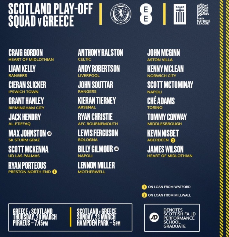 3月11日訊 即將到來的歐國聯(lián)A聯(lián)賽升級(jí)賽,蘇格蘭將和希臘進(jìn)行兩回合的比賽。目前,蘇格蘭已經(jīng)公布了大名單,羅伯遜、麥克托米奈領(lǐng)銜,蒂爾尼在列。
