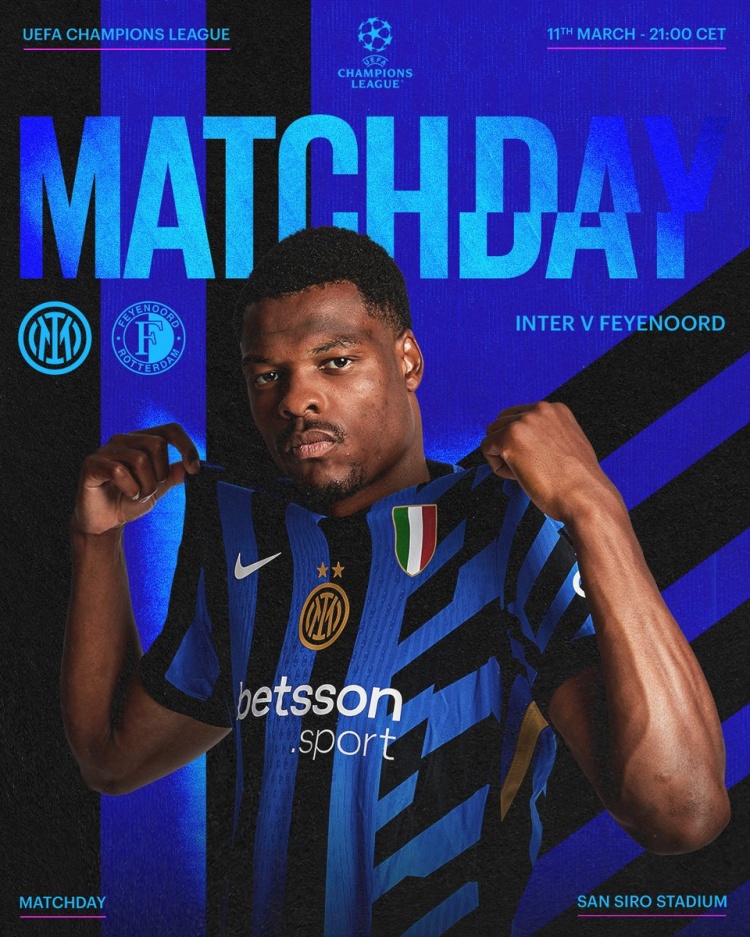 3月11日訊 北京時間明天凌晨4點,國米將在主場對陣費耶諾德,這是歐冠1/8決賽的次回合比賽,國米首回合2-0領(lǐng)先對手,國米在賽前發(fā)布了球隊海報。