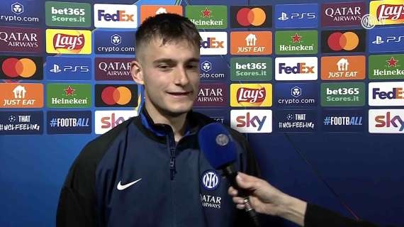 3月12日訊 在國米主場2-1擊敗費耶諾德,總比分4-1晉級歐冠八強后,上演首秀的國米小將貝倫布魯赫接受了ITV的賽后采訪。