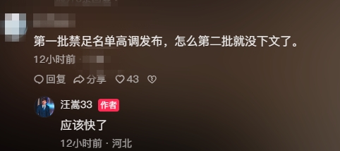 網(wǎng)友:第一批禁足名單高調(diào)發(fā)布,怎么第二批就沒下文了。
