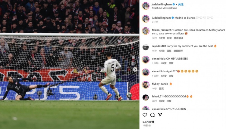他在點(diǎn)球大戰(zhàn)成功命中,也在賽后通過社媒曬出破門瞬間照,并配文:“馬德里是白色的????????????????????”
