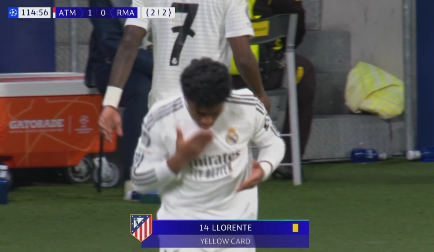 AZP鏟倒貝林厄姆,裁判出示黃牌