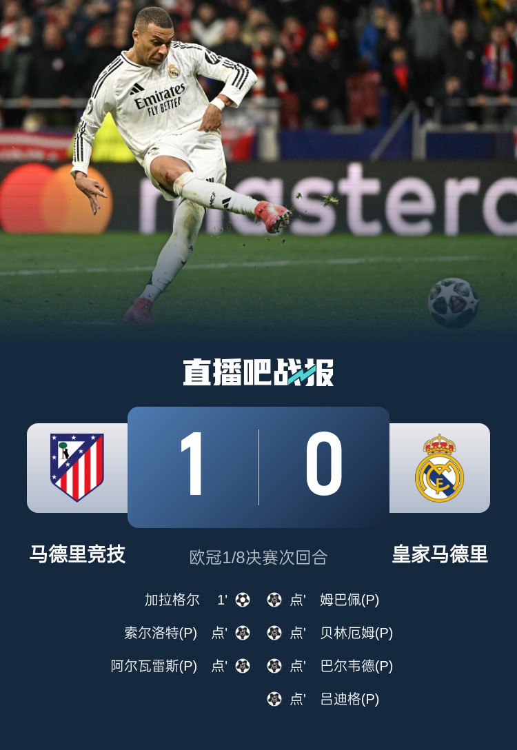 歐冠1/8決賽次回合,皇馬兩回合2-2,點(diǎn)球大戰(zhàn)4-2擊敗馬競晉級(jí)歐冠8強(qiáng),將迎戰(zhàn)阿森納。上半場(chǎng),加拉格爾閃擊破門,阿爾瓦雷斯兩次勁射被庫爾圖瓦撲出;下半場(chǎng),姆巴佩造點(diǎn),維尼修斯主罰打飛;加時(shí)賽,雙方均未制造破門良機(jī);點(diǎn)球大戰(zhàn),阿爾瓦雷斯滑倒二次觸球進(jìn)球無效,巴斯克斯主罰被撲,略倫特?fù)糁袡M梁。