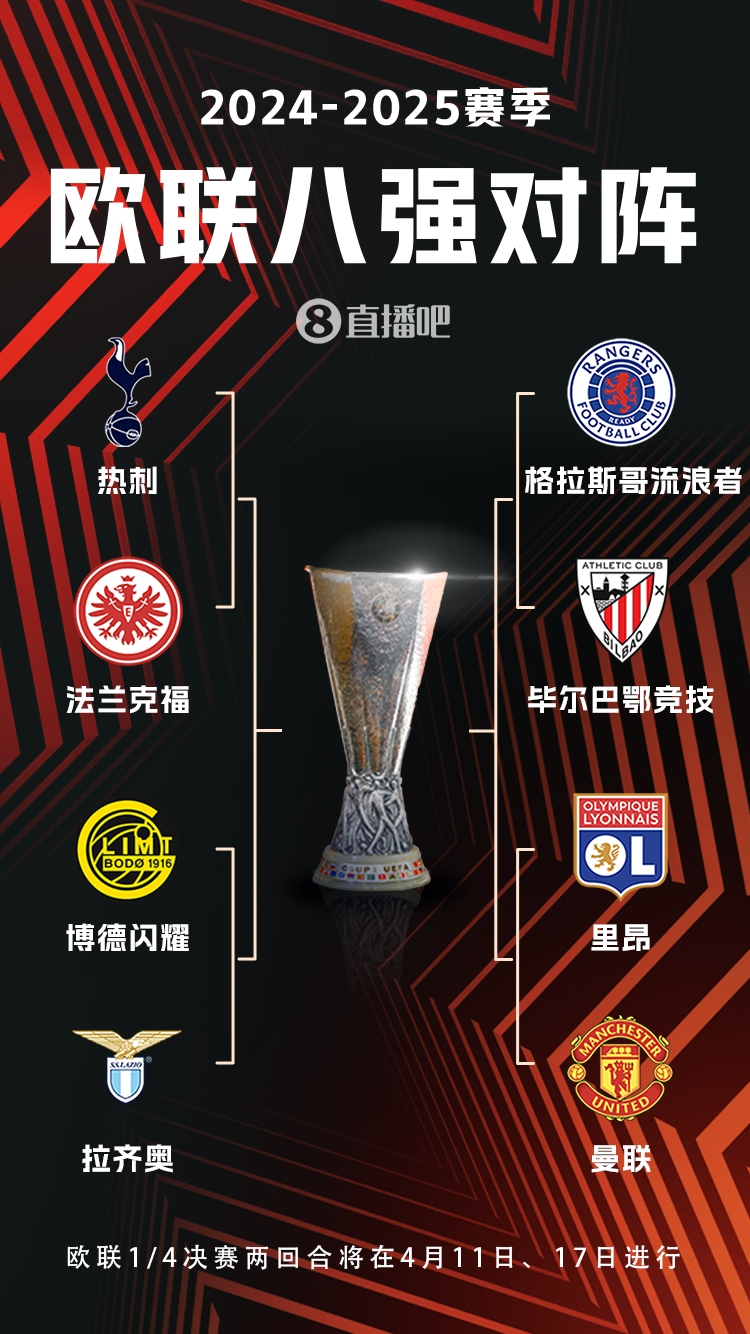 ??歐聯(lián)8強(qiáng)對(duì)陣:曼聯(lián)vs里昂,流浪者vs畢巴,熱刺vs法鷹