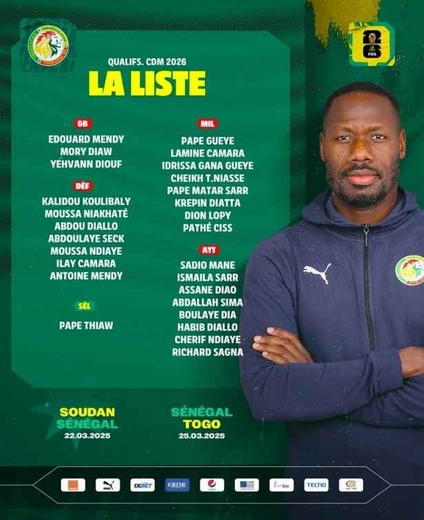 當(dāng)?shù)貢r(shí)間本周四,塞內(nèi)加爾國家隊(duì)公布了新一期大名單,備戰(zhàn)接下來對(duì)蘇丹(3月22日)和多哥(3月25日)的兩場世界杯非洲區(qū)預(yù)選賽。其中阿薩內(nèi)-迪奧首次入選塞內(nèi)加爾國家隊(duì)。