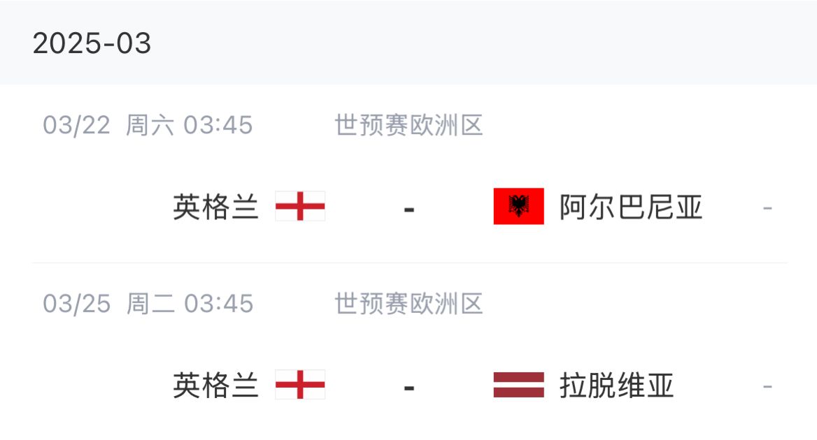 本期英格蘭隊將在3月底出戰(zhàn)兩場世預(yù)賽,對手分別是阿爾巴尼亞和拉脫維亞。