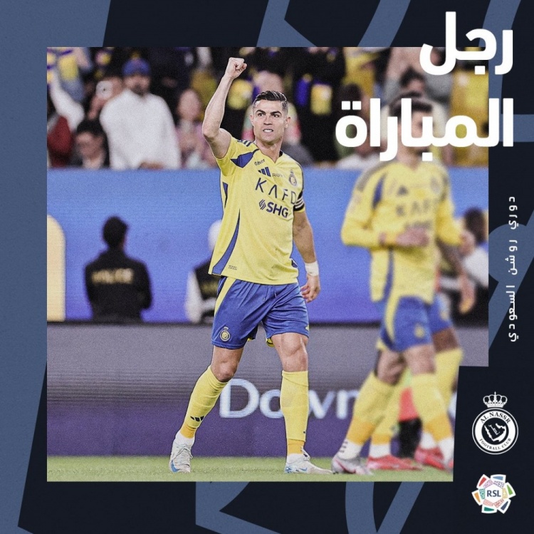 沙特聯(lián)賽官方也在賽后宣布:“經(jīng)過球迷投票,C羅當選為本場聯(lián)賽的全場最佳球員?!?/p>