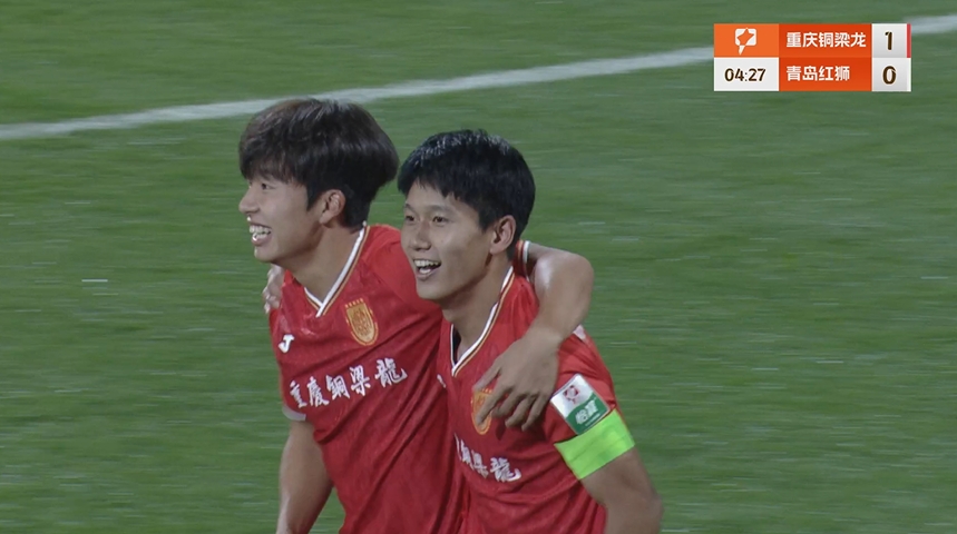 比賽第4分鐘,白余濤小角度打門擊中立柱,向余望補射破門,重慶銅梁龍1-0領(lǐng)先。