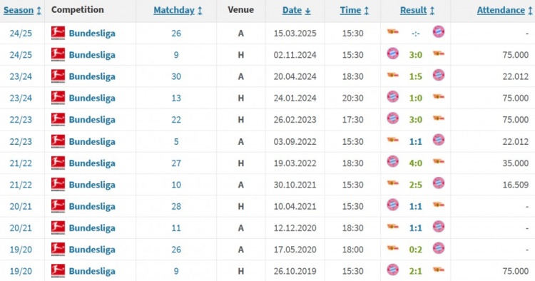據(jù)德轉(zhuǎn)數(shù)據(jù)統(tǒng)計(jì),兩支球隊(duì)歷史上曾11次交手(均是德甲比賽),拜仁8勝3平未嘗敗績(jī),共計(jì)打進(jìn)28球丟7球。