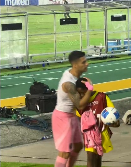 賽后,有球迷拍到蘇亞雷斯將球衣送給了一位小球迷,并與他擁抱致意。