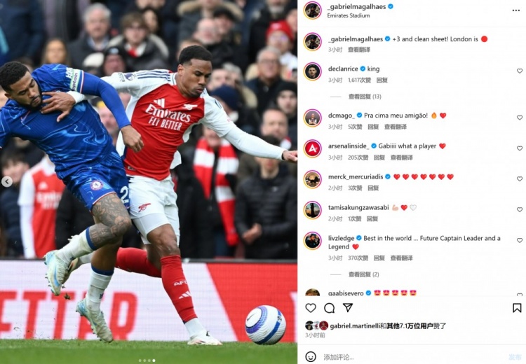 3月17日訊 在本輪英超,阿森納1-0擊敗切爾西。本場比賽加布里埃爾發(fā)揮出色,賽后當選英超官方球迷票選全場最佳,賽后他也在社媒曬出本場與里斯-詹姆斯對抗照片,配文寫道:“拿下三分并完成零封,倫敦是紅色的!” 標簽: 足球 英超 阿森納
