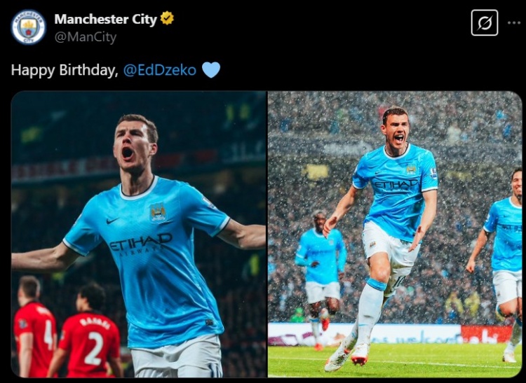 3月17日訊 今天是波黑前鋒哲科39歲生日,曼城官推也曬照祝這位舊將生日快樂(lè)。