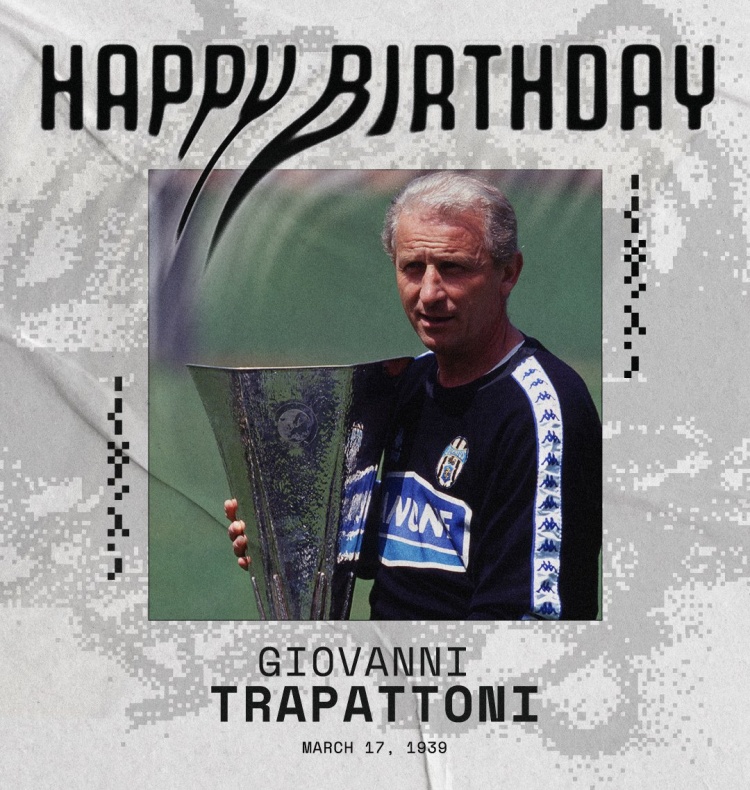 3月17日訊 今天是意大利知名教練特拉帕托尼的86歲生日,尤文和國(guó)米為他送上祝福。
