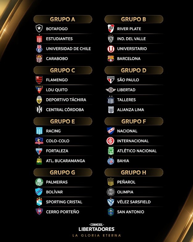 3月18日訊 本賽季南美解放者杯分組抽簽結(jié)果出爐,博塔弗戈與大學(xué)生同組,河床與巴塞羅那SC同組。