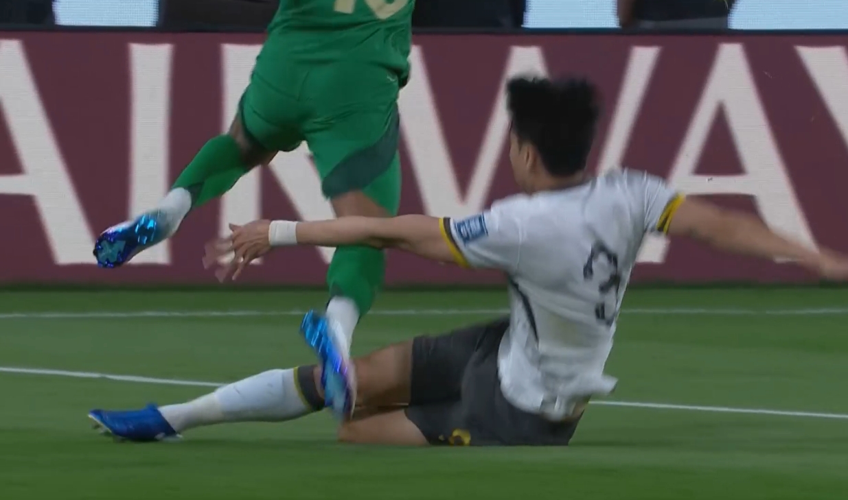 03月21日訊 國足vs沙特第14分鐘,高準翼邊路鏟倒對手,裁判吹罰犯規(guī)不過沒有出牌。