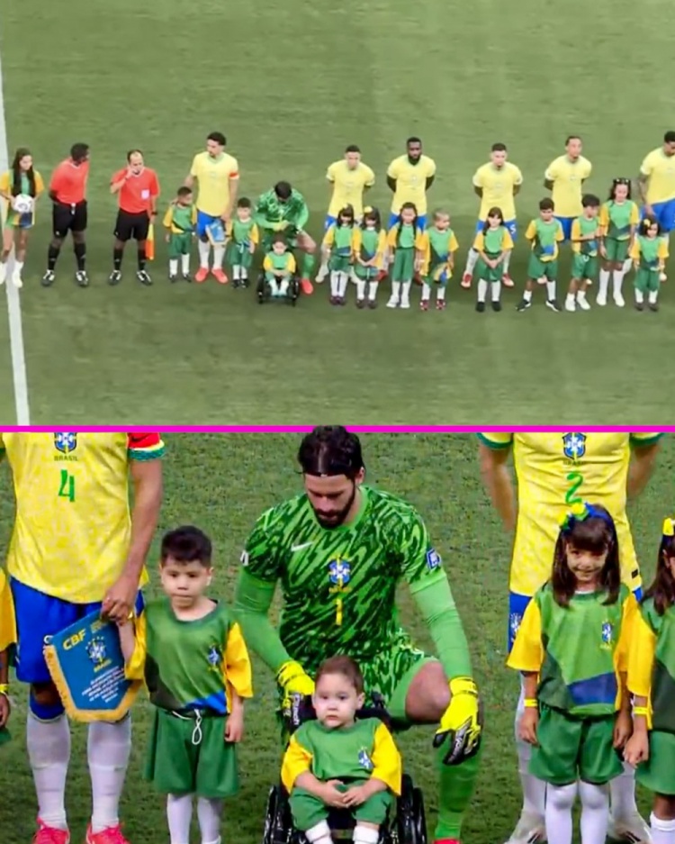 此役阿利森擔(dān)任巴西隊(duì)首發(fā)門將,他在賽前列隊(duì)奏國歌時(shí)單膝跪地,以照顧身前坐輪椅的球童,避免身高差太大。