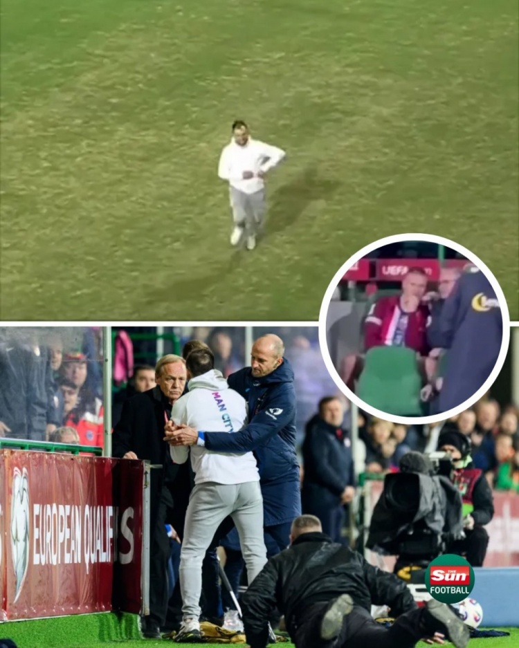 在這場比賽中,哈蘭德在比賽的第七十八分鐘被替換下場。當(dāng)這名球迷沖入球場時(shí),哈蘭德正坐在替補(bǔ)席上觀看比賽。在他沖向哈蘭德的時(shí)候,他同時(shí)把他的手伸入了自己的口袋。