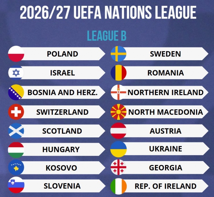 3月24日訊 歐國聯(lián)升級賽已經全部結束,2026-27賽季將征戰(zhàn)B級別聯(lián)賽的代表隊名單也已經全部出爐。