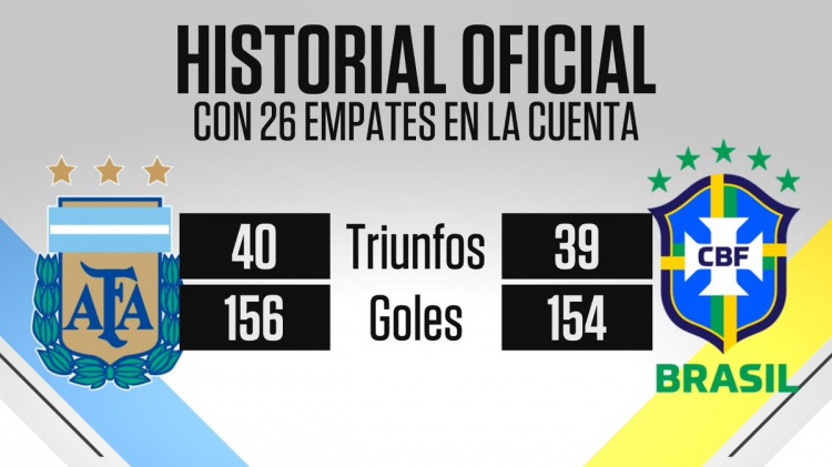 據(jù)ESPN統(tǒng)計,阿根廷與巴西交手105次,阿根廷戰(zhàn)績40勝26平39負(fù),打進(jìn)156球,丟掉154球。