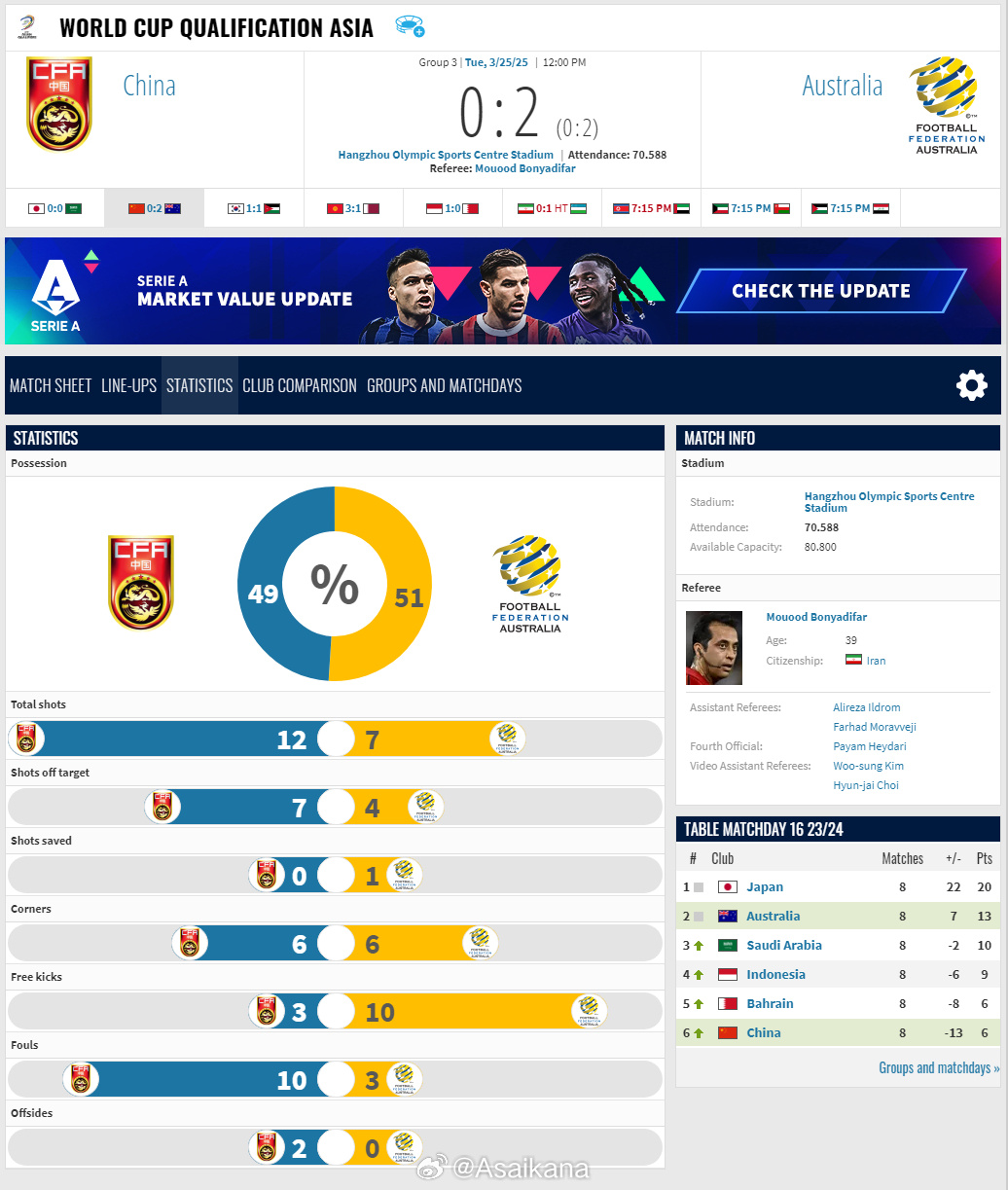 2026年美加墨世界杯亞洲區(qū)預(yù)選賽,中國0-2澳大利亞比賽報(bào)告 ???。