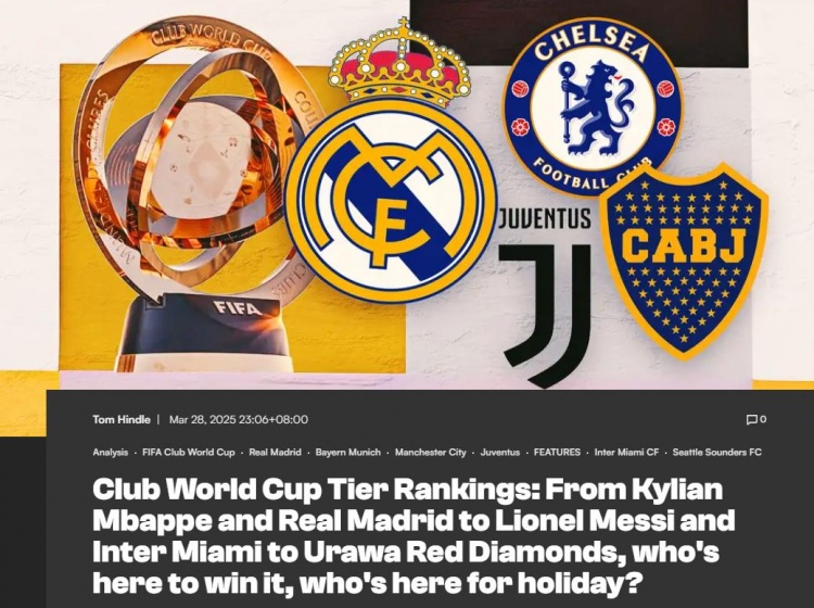 3月29日訊 新世俱杯將于今年夏天在美國舉行,“進(jìn)球網(wǎng)”為已經(jīng)確定的31隊(duì)進(jìn)行了“分班”。