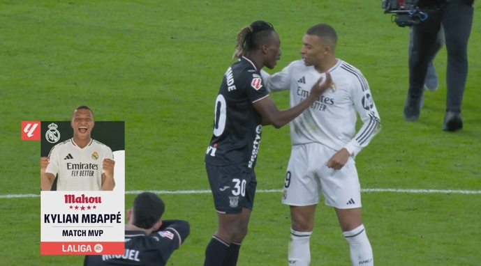 3月30日訊 西甲第29輪比賽,姆巴佩梅開二度,幫助皇馬主場(chǎng)3-2擊敗萊加內(nèi)斯,他當(dāng)選本場(chǎng)比賽最佳球員。
