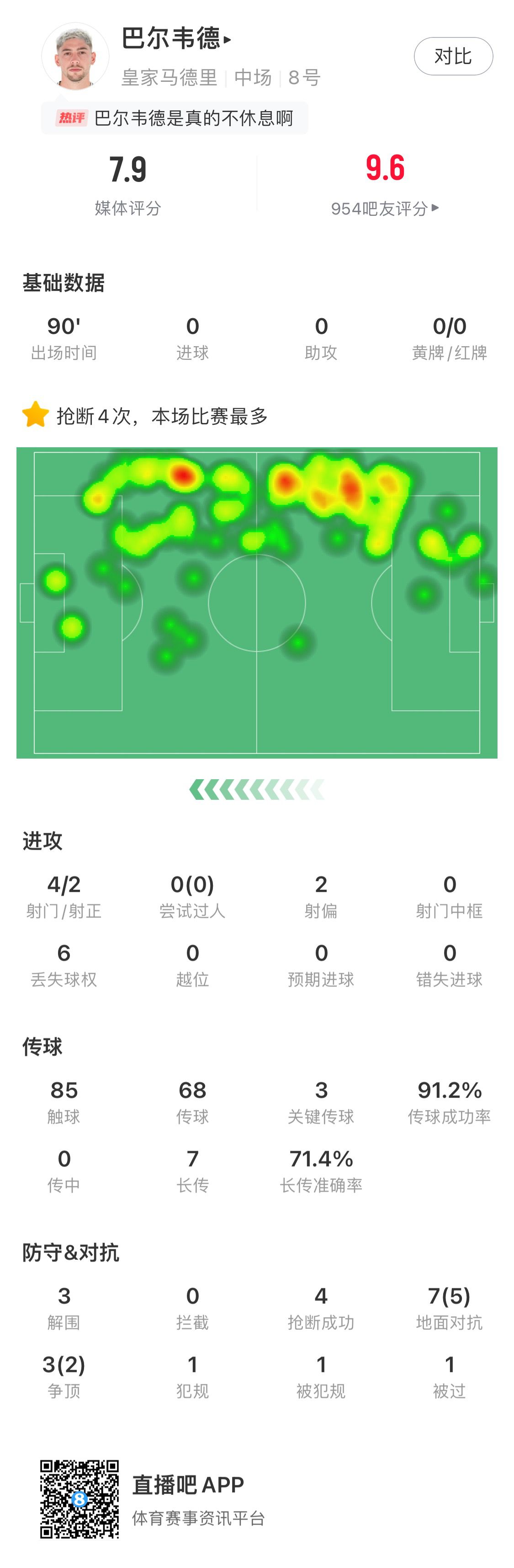 近一個(gè)月,巴爾韋德出戰(zhàn)10場比賽,9次首發(fā),其中6場踢滿全場、1場92分鐘下場。