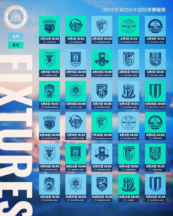開局兩連客,深圳新鵬城2025賽季中超賽程表出爐!