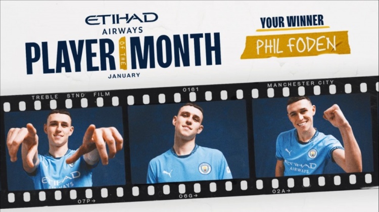 2月6日訊 官方消息,福登當(dāng)選曼城1月最佳球員。
