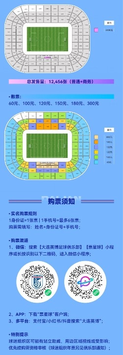 2月6日訊 大連英博俱樂部發(fā)布2025賽季票務(wù)公告,開啟新賽季票務(wù)出售。