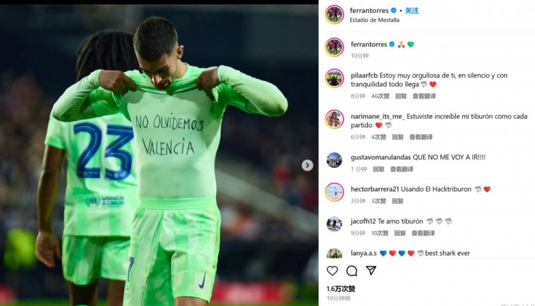 他也在進(jìn)球后掀開球衣,露出內(nèi)衣上的“我們不要忘記瓦倫西亞”字樣,并且在賽后通過社媒曬照并配上????????符號(hào)。