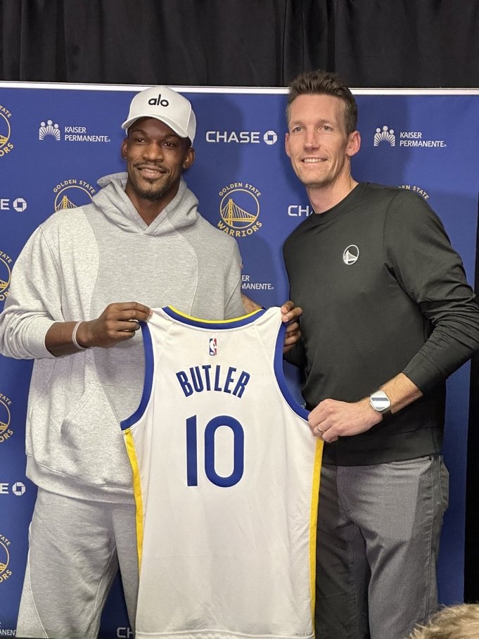 NBA勇士隊(duì)為新援巴特勒舉辦新聞發(fā)布會,巴特勒在發(fā)布會上拿到了自己的勇士10號球衣,鄧?yán)S表示這是他新秀賽季效力勇士時所穿的球衣號碼,而巴特勒透露,他選擇10號球衣是為了致敬好友內(nèi)馬爾。