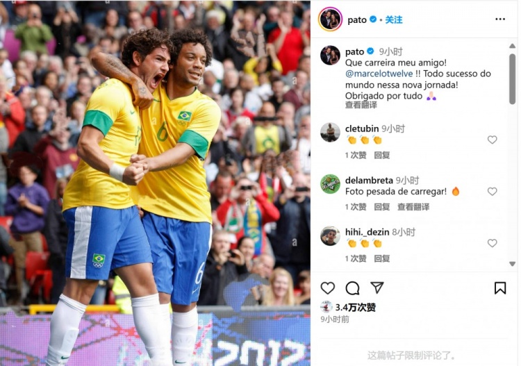 2月7日訊 巴西傳奇球星馬塞洛宣布退役,其昔日巴西國(guó)家隊(duì)隊(duì)友帕托也在社媒曬出合影為其送上祝福。