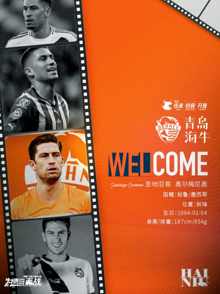 經(jīng)協(xié)商一致,擁有秘魯/墨西哥雙國籍球員圣地亞哥·奧爾梅尼奧(Santiago Orme?o)自由身加盟青島海牛足球俱樂部,他與俱樂部簽署合約為1+1,歡迎他的到來!
