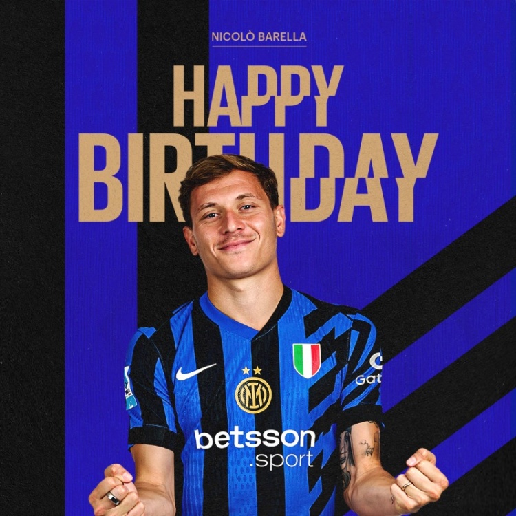 2月7日訊 今天是國米中場巴雷拉的28歲生日,國米官方為他送上祝福。