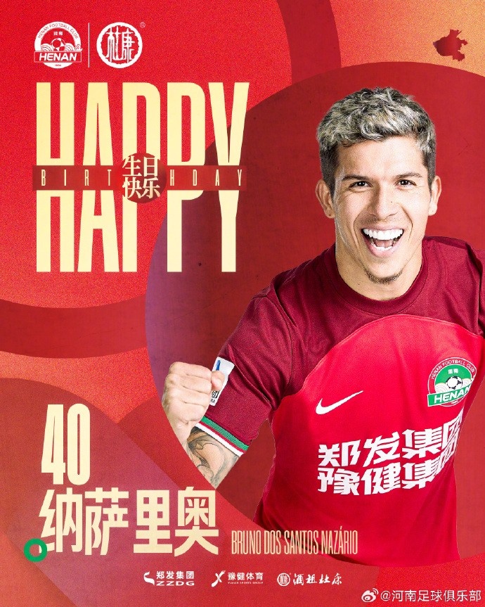 今天是河南俱樂部酒祖杜康球員納薩里奧的生日,讓我們一同祝福他生日快樂! ???