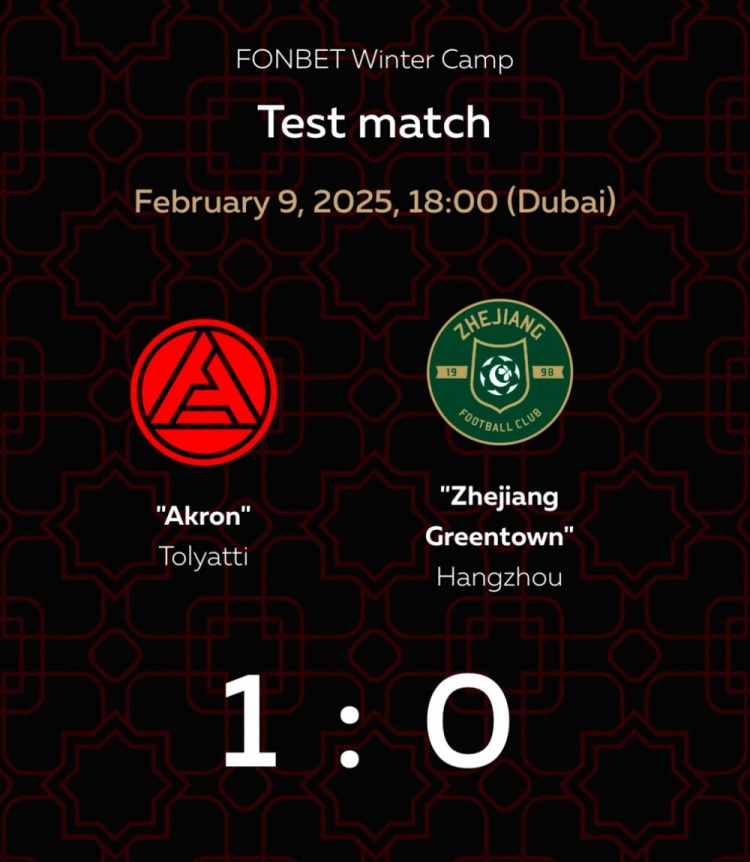 2月10日訊 北京時間昨晚,正在阿聯(lián)酋冬訓(xùn)的浙江隊,在熱身賽中0-1不敵俄超球隊阿克隆。