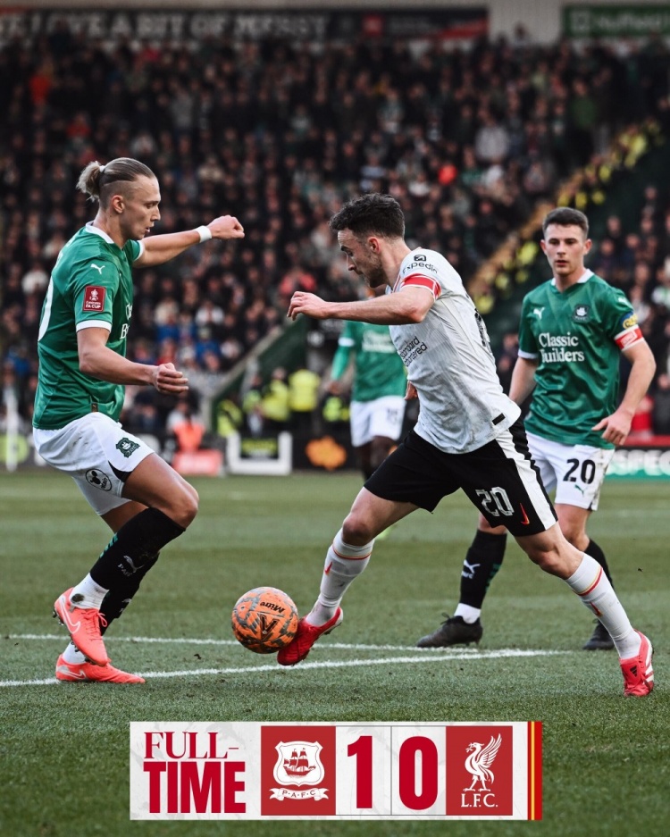 英格蘭足總杯第4輪,利物浦0-1普利茅斯止步32強。上半場,戈麥斯傷退,紅軍半場僅1射正;下半場,埃利奧特送點,哈迪點射打破僵局,麥康奈爾失良機。