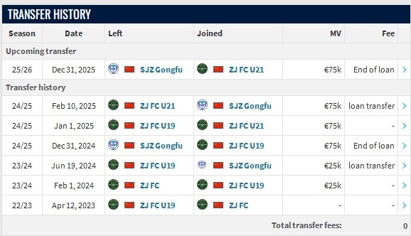 轉(zhuǎn)會歷史方面,徐俊馳去年夏天就曾租借至石家莊功夫,今天再次從浙江隊租借加盟石家莊功夫,租期至今年年底。