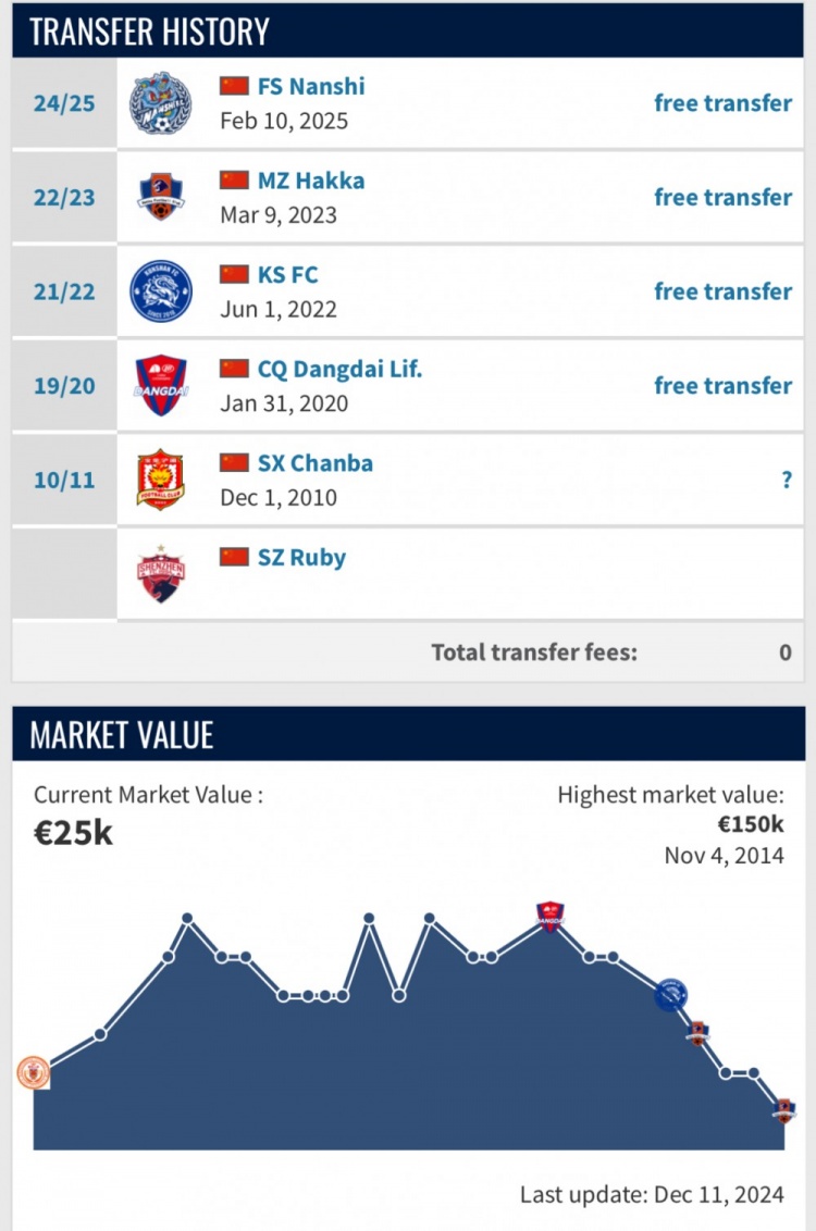 在德轉(zhuǎn)陳杰的個(gè)人頁面中,他已經(jīng)于2月10日加盟佛山南獅,不過合同年限并未披露。本次陳杰屬于自由身轉(zhuǎn)會,因此佛山南獅無需支付轉(zhuǎn)會費(fèi)用。