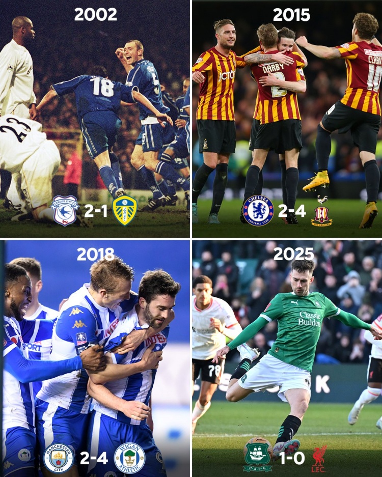 據(jù)足總杯官方統(tǒng)計,利物浦是足總杯歷史上第4支被低級別聯(lián)賽球隊淘汰的英超領(lǐng)頭羊,此前3支是利茲聯(lián)(2002)、切爾西(2015)、曼城(2018)。