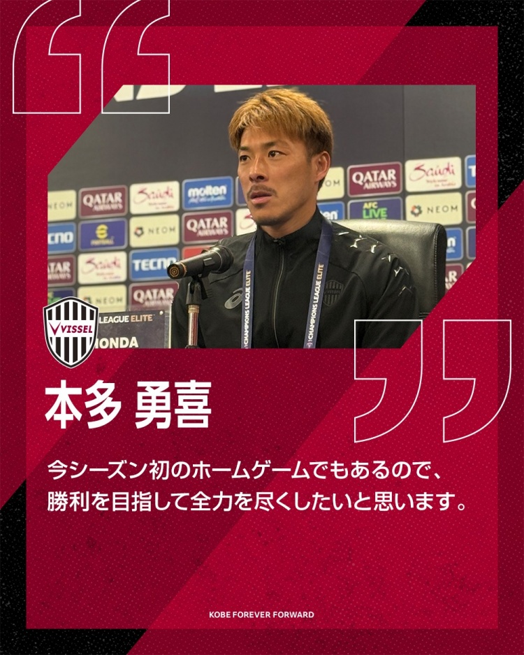 2月11日訊 北京時(shí)間今晚18:00,亞冠精英聯(lián)賽小組賽第7輪神戶(hù)勝利船將在主場(chǎng)迎戰(zhàn)上海海港。昨日神戶(hù)后衛(wèi)本多勇喜在球隊(duì)主帥吉田孝行的帶領(lǐng)下接受了采訪(fǎng),對(duì)比賽進(jìn)行展望。